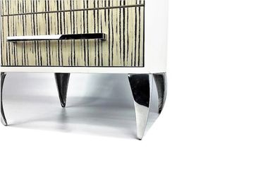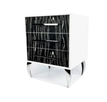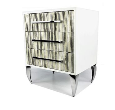 The Tanglewood (3) drawer side table is perfect for the bedroom as a night stand, or as a living room end table! Tanglewood offers 3 drawers and comes in white maple with black Macassar drawer fronts, or white maple with white Macassar drawer fronts and beautiful polished chrome pulls.
